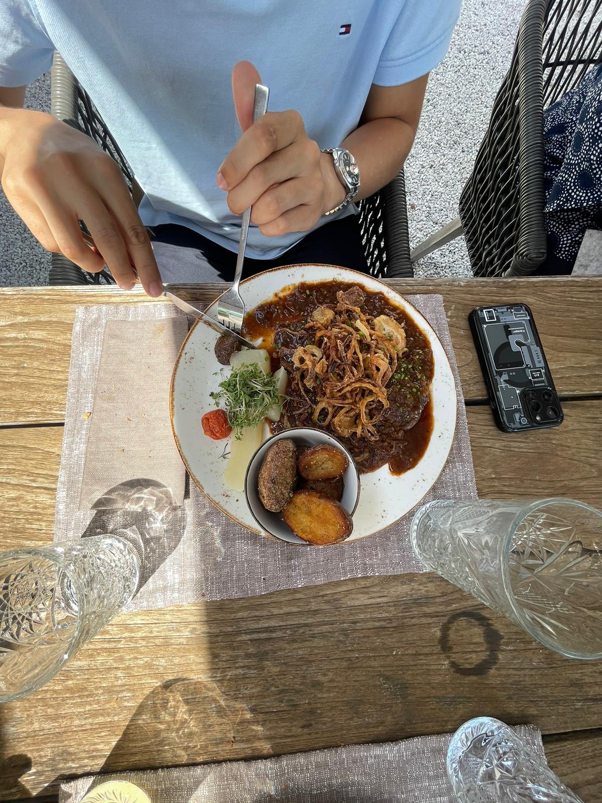 Vorher Vitello Donato mit so einer grünen Sauce, es war sooooooo geil.